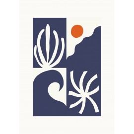 Με μια φιγούρα σε ζωηρό indigo που ξεπηδά από το λευκό φόντο, το Linocut II της Jazmine Joye είναι πλήρες με όλη την υφή και το χρώμα της διαδικασίας εκτύπωσης.
