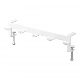 Υλικό: Ατσάλι σε λευκό χρώμα.Διαστάσεις: L 18 x W 30 x H 9,5cmΜέγιστο φορτίο: 7,5 kg (1,5 kg / ανά γάντζο)Σχεδιασμένο για να μην αφήνει σημάδια στις προσαρτημένες επιφάνειες.Προσαρμόζεται σε τραπέζια ή άλλα έπιπλα χρησιμοποιώντας ρυθμιζόμενες βίδες.Ι..