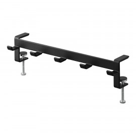 Υλικό: Ατσάλι σε μαύρο χρώμα.Διαστάσεις: L 18 x W 30 x H 9,5cmΜέγιστο φορτίο: 7,5 kg (1,5 kg / ανά γάντζο)Σχεδιασμένο για να μην αφήνει σημάδια στις προσαρτημένες επιφάνειες.Προσαρμόζεται σε τραπέζια ή άλλα έπιπλα χρησιμοποιώντας ρυθμιζόμενες βίδες.Ι..