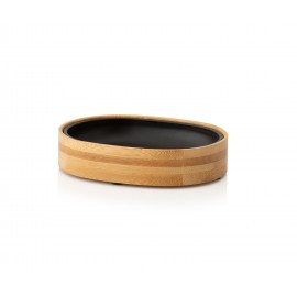 Στην επιφάνεια διαθέτει ανάγλυφες κάθετες γραμμές και αδρή υφή.Το ξύλο της βάσης είναι επεξεργασμένο για να αντιστέκεται στην υγρασία του μπάνιου.Υλικό: Polyresine/Ξύλο ακακίαςΧρώμα: Μαύρο/Φυσικό ξύλοΔιαστάσεις: 14 x 9,5 x 3cmΣυντήρηση: Καθαρίστε με ..