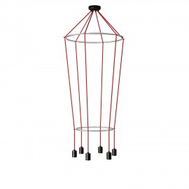 Το 6φωτο φωτιστικό Cage P-Light αποτελείται από:6x110 cm υφασμάτινο καλώδιο 2x0,75 στο χρώμα της επιλογής σας1 μεταλλική ροζέτα με 6 τρύπες στο χρώμα της επιλογής σας6 μεταλλικά ντουί E14 - max 10W1 Αξεσουάρ Cage Κύκλος 60cm στο χρώμα της επιλογής σα..