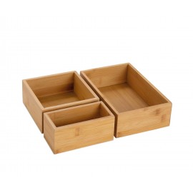 Υλικό: BambooΧρώμα: ΦυσικόΔιαστάσεις τοποθετημένα όπως στη φωτογραφία: 30 x 23 x 7cmΔιαστάσεις για κάθε κουτί: 7,5x15x6,8 cm / 15x15,5x6,8 cm / 15x23x6,8 cmΣυντήρηση: Πλύσιμο με νωπό πανί. Μην χρησιμοποιείτε λειαντικά προϊόντα...