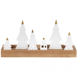 Βάση από ξύλο ακακίας και σπιτάκια από ματ πορσελάνηΔιαστάσεις: 25 x 7 x 13cm..