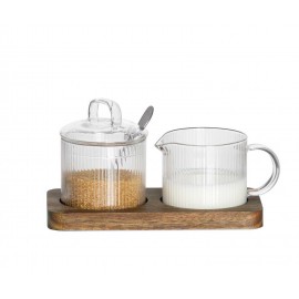 Andrea House - Σετ Σερβιρίσματος Για Γάλα Και Ζάχαρη Glass Stripes Acacia