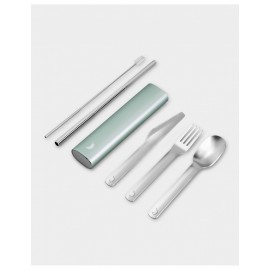 Σετ μαχαιροπήρουνων 4 τεμαχίων.Περιλαμβάνει πιρούνι από ανοξείδωτο χάλυβα, κοφτερό μαχαίρι, κουτάλι, τηλεσκοπικό καλαμάκι και βουρτσάκι και θήκη αλουμινίου.Πλένεται στο πλυντήριο πιάτων για εύκολο καθάρισμα...
