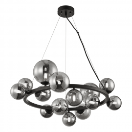 Milagro - Γυάλινο Κρεμαστό Φωτιστικό Μαύρο με Φυμέ Γυαλί Mila Στεφάνι Ø76,6cm 14xG9