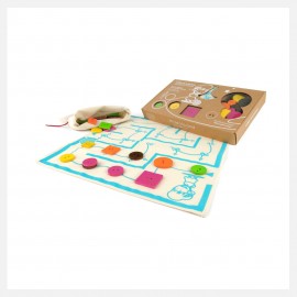 Ένα επιτραπέζιο παιχνίδι με λαβύρινθο και μια τσάντα με 45 ξύλινα κουμπιά που είναι όλα διαφορετικάΟι παίκτες προχωρούν τοποθετώντας το ένα κουμπί μετά το άλλο, εάν έχουν το ίδιο σχήμα, χρώμα ή μέγεθος με το προηγούμενοΔιαθέτει επιπλέον απλοποιημένη ..